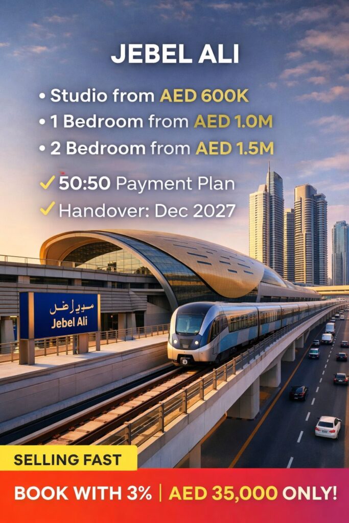 Jebel Ali is one of Dubai’s fastest-growing economic hubs. With 11,000+ companies in JAFZA, proximity to Dubai South, Palm Jebel Ali, and Al Maktoum International Airport, the area offers high rental demand and long-term capital appreciation.