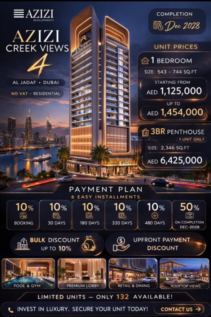 Azizi Developments is one of Dubai’s most trusted and established real estate developers, known for delivering high-quality homes across prime locations.